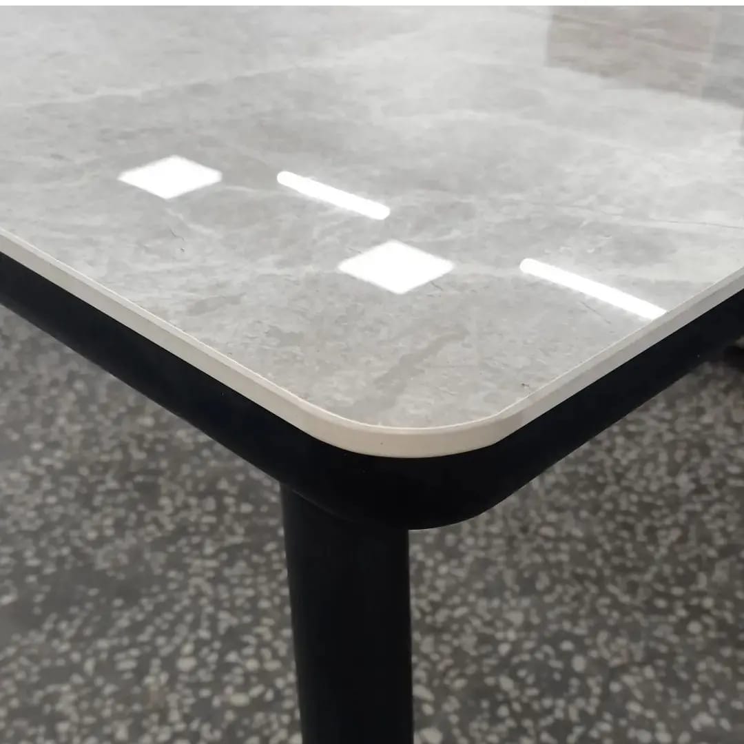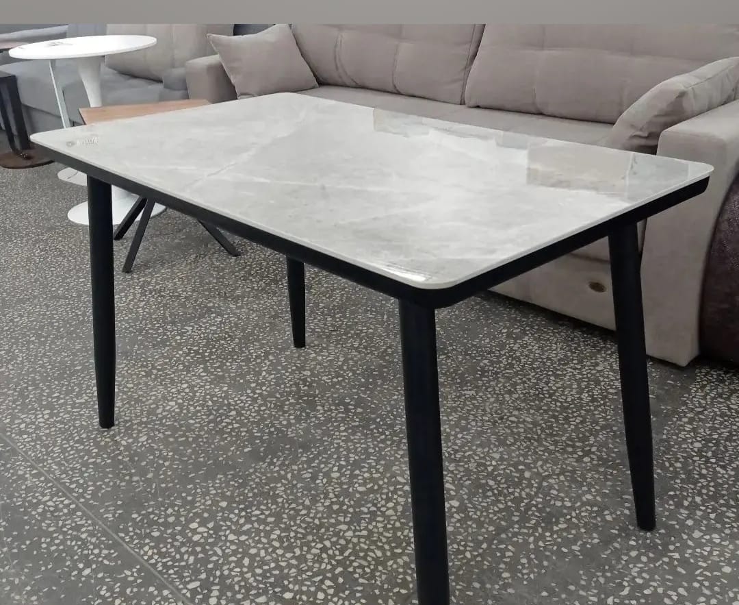 Стол обеденный "Версаль" (серый мрамор/закаленное стекло/черный)